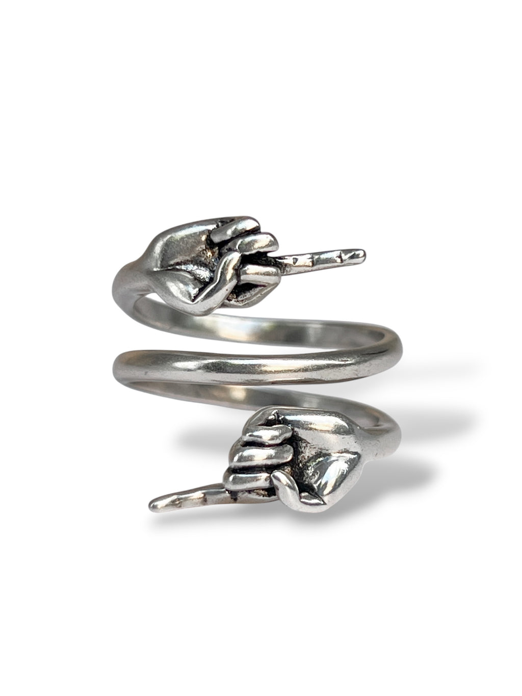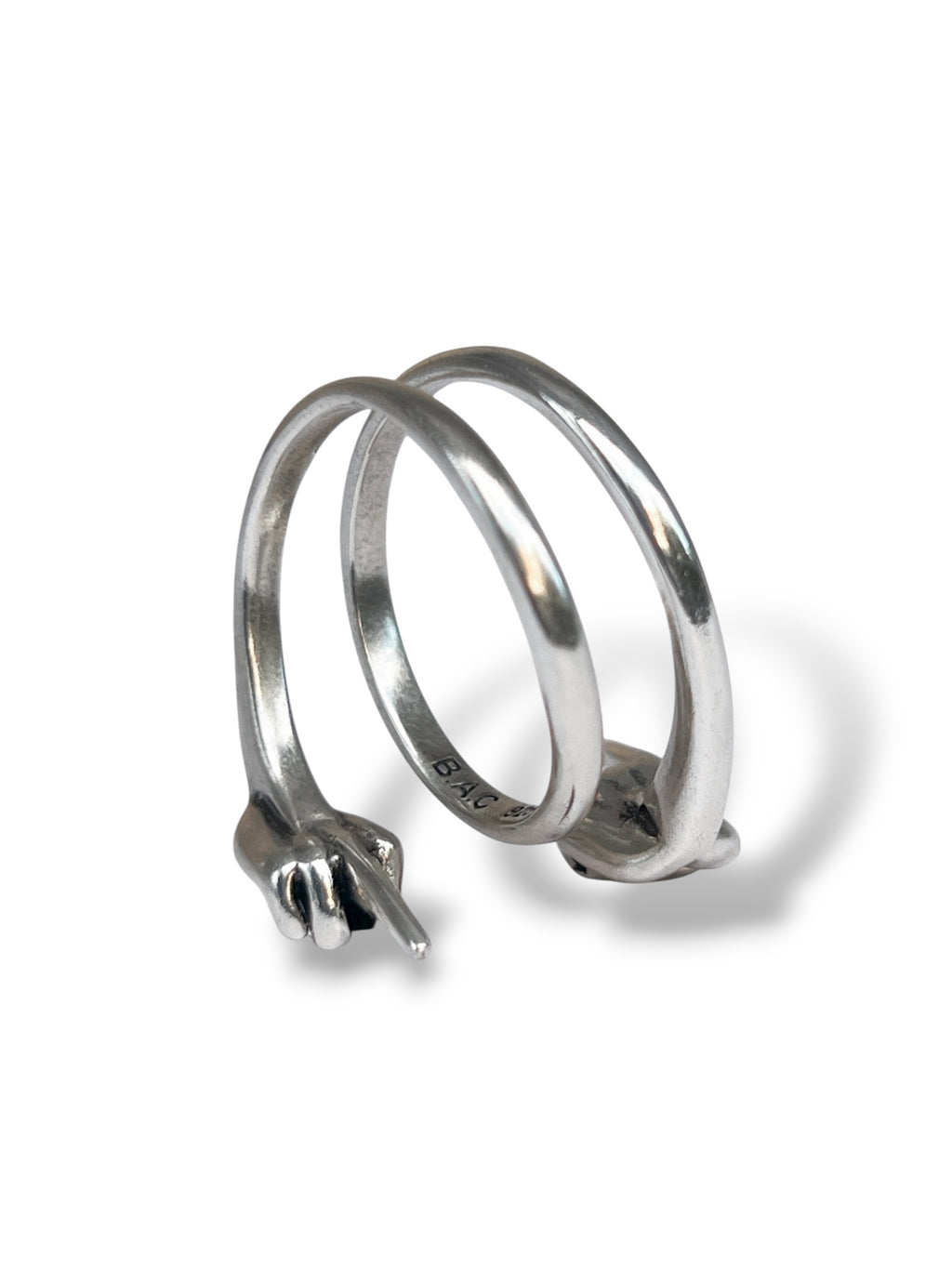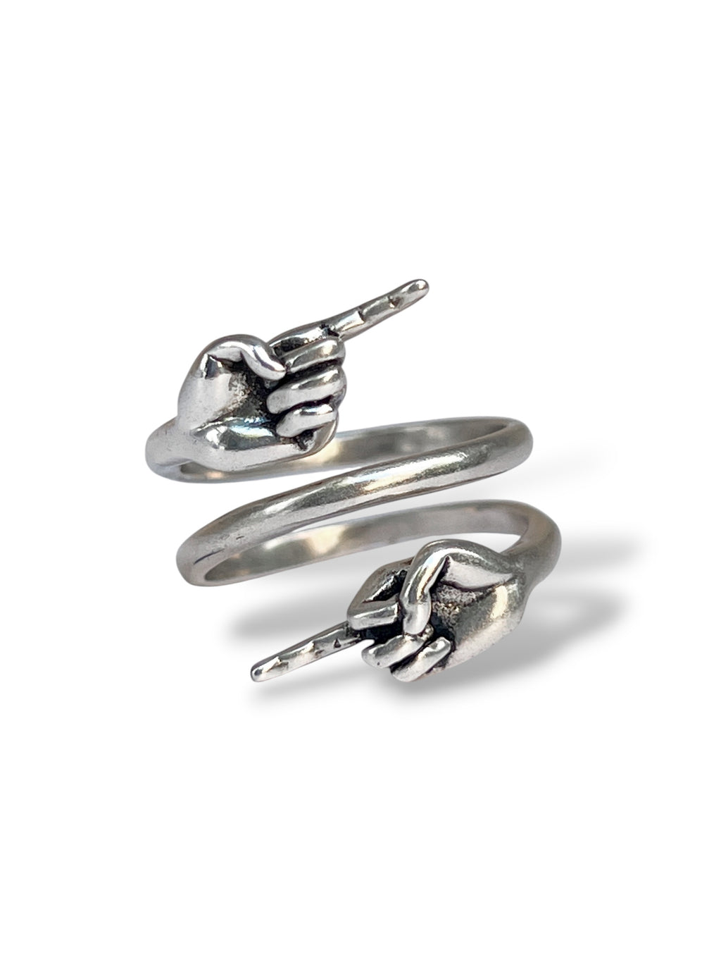 A sharper way to say what you mean. The Pointing Middle Finger Ring features both the pointer and middle finger extended — a sculptural design that doubles as a bold “F*ck You” gesture.