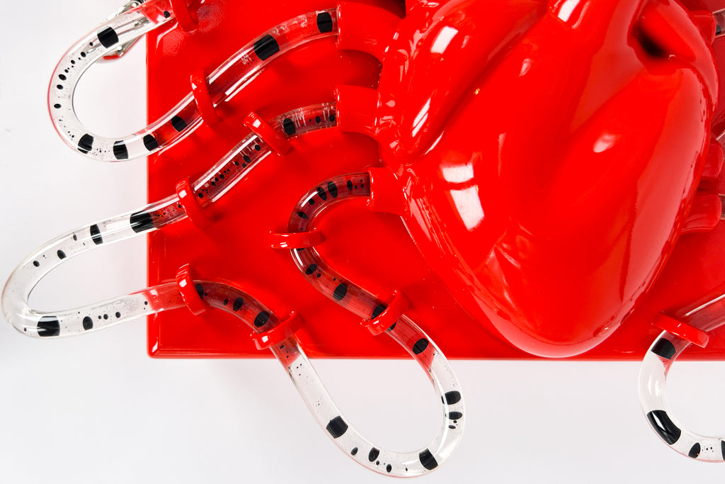 This piece began as an exploration of exhaustion, heartbreak, and the constant pressure to create. The pumping mechanism reflects the emotional and physical rhythms we carry. A reminder of fragility, resilience, and the body’s unrelenting drive to keep going.