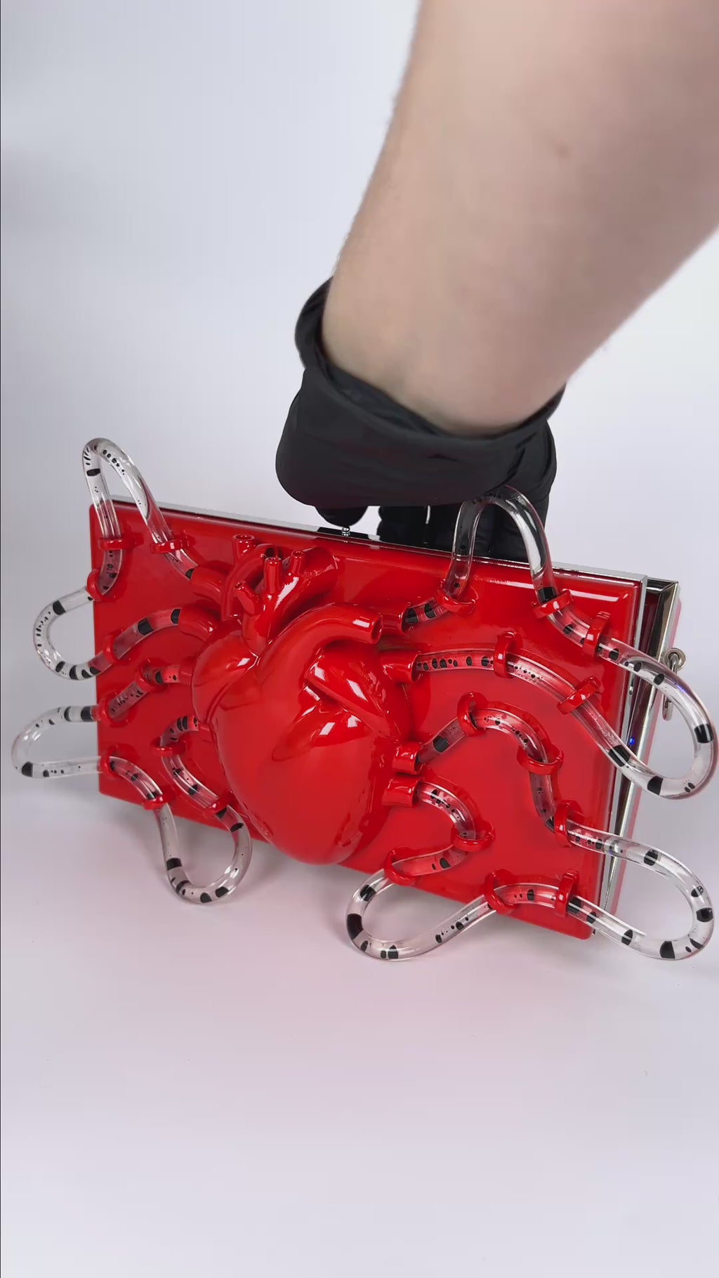 • The Pumping Heart Bag™ is designed to be worn vertically — this orientation keeps the internal liquid composition balanced and visually dynamic.